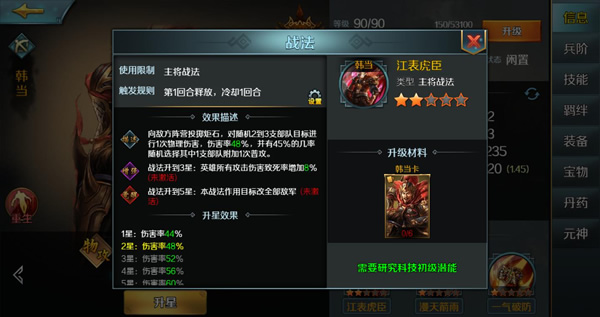 阵容的主力输出英雄是通过任务获得的【韩当】,【韩当】是一名不没有任何控制的纯物理输出型英雄。选择他的主要原因就是因为他是免费获得的而且恰好还是弓兵部队~