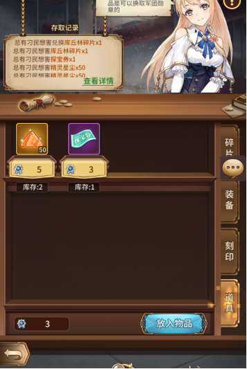 宝库内可以投放碎片、装备、刻印、道具等物品,玩家投放物品后可获得相应数量的军团勋章,军团勋章可以在军团宝库购买你所需要的碎片、装备、刻印、道具等物品。