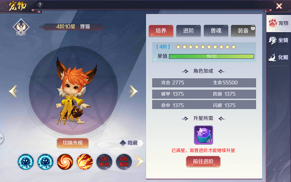 2.宠物进阶后不仅可以获得全新的宠物外观,还可解锁强力被动属性。