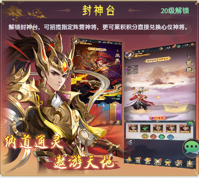 在封神台系统中,可消耗封神符,指定种族神将进行召唤,还可获得封神积分,直接兑换指定神将,种族养成更直白简易。