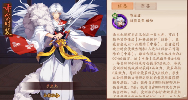 ◆想忽略杀生丸的伤害,可笑至极,多达九层的【中毒】,你以为杀生丸是吃素的?这还只是杀生丸的被动而已,并非爆发类型的必杀技,不要太天真~