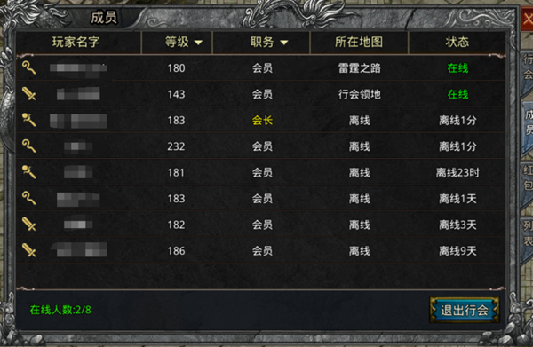 加入行会后,点击成员界面可查看当前行会成员的状态和位置,可以随时掌握行会成员动态。