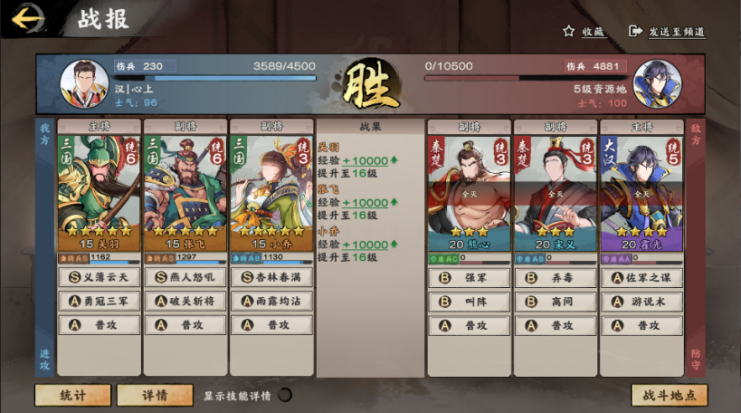 使用技能:燕人怒吼+破关斩将/擒贼擒王/一马当先