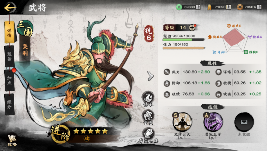 关羽是游戏里暴力输出的代表之一,其自带技能“义薄云天”能使其在友军造成武力伤害时概率对敌追加武力伤害,并降低敌方防御。关羽若选择与“张飞”等具备强大武力输出能力一起组队,并辅以“协同作战”的协同进攻效果或“一击止啼”等攻击技能,则可更好地发挥其联动输出的优势。