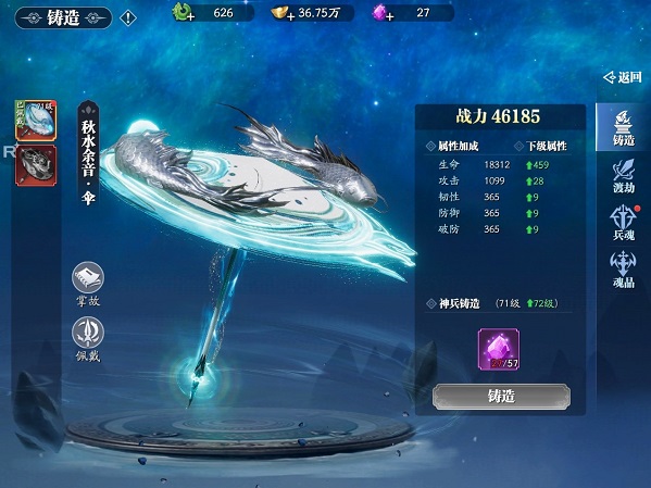 在《幻世九歌》中,龙吟、七煞、凌波、飞星四大职业,都拥有对应的专属神兵。激活神兵系统以后,不仅可以让武器外观华丽升级,还能够带来超高战力与多方面属性加成!不仅如此,通过锻造与渡劫对神兵进一步培养,还能够解锁更多强大效果!