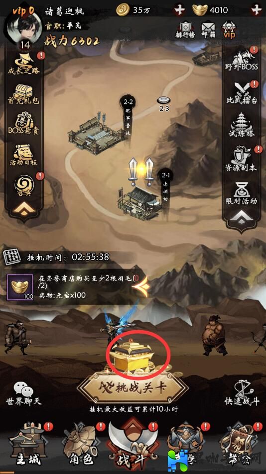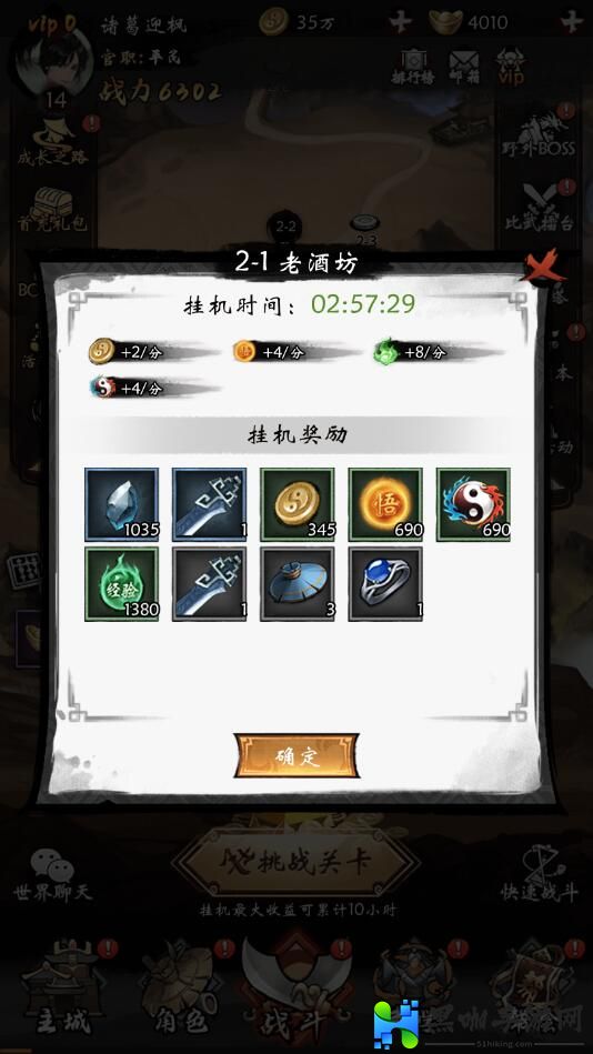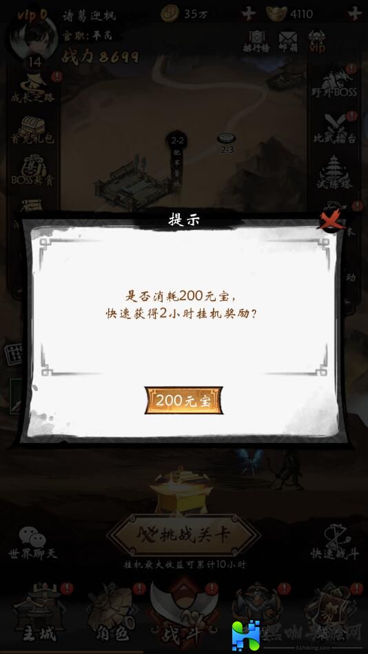 6、如下图,每消耗200元宝可以快速获得2小时的挂机奖励