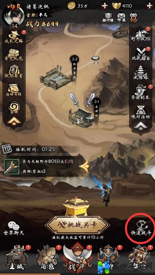 5、最后,玩家还可以点击右下角的“快速战斗”进行升级