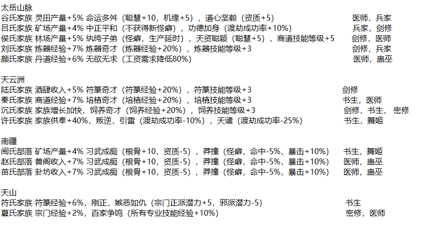 世界地图第一天我们主要活跃在太岳山脉,太岳山脉会刷新以下家族,推荐选择吕氏家族、侯氏家族和刘氏家族。方便在前期通过家族招募获得天火剑。