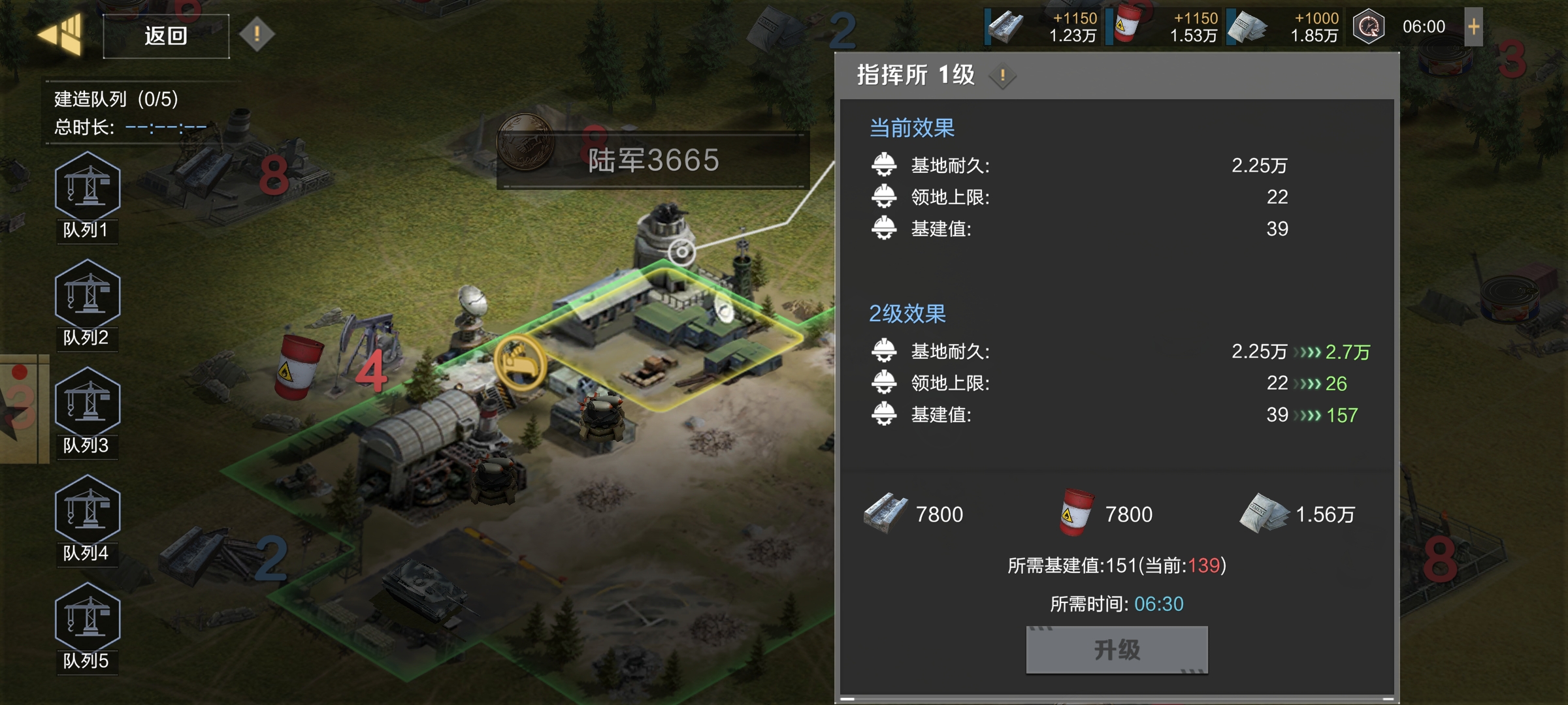 指挥所是基地中的核心建筑,指挥所的等级决定基地防御能力,同时会限制着其他建筑的等级。