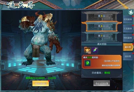玩家在次日可以一键扫荡至已通的最高层,获得大量宝石奖励。
