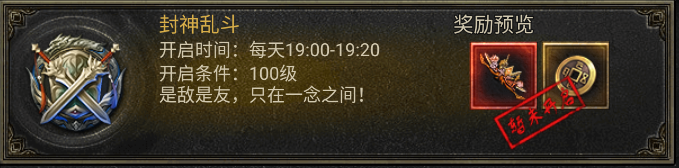 奖励预览:乱斗之王称号、封神币(用于系统消耗、商城购买)。