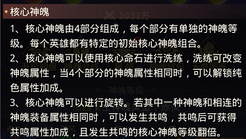 核心命石可以通过旋转来调整顺序,当神魄与相连神环中的神魄装备属性相同时,可触发共鸣,触发共鸣光效并使该神魄等级翻倍。