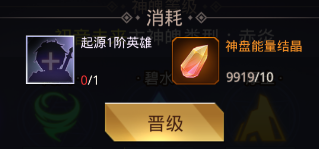 在进行神盘升级时,除了需要消耗英雄本体和神盘能量晶体。