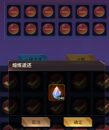 只可分解等级为1的神魄装备,升级后的神魄无法进行分解。分解可获得的材料数量与神魄装备的品质有关。