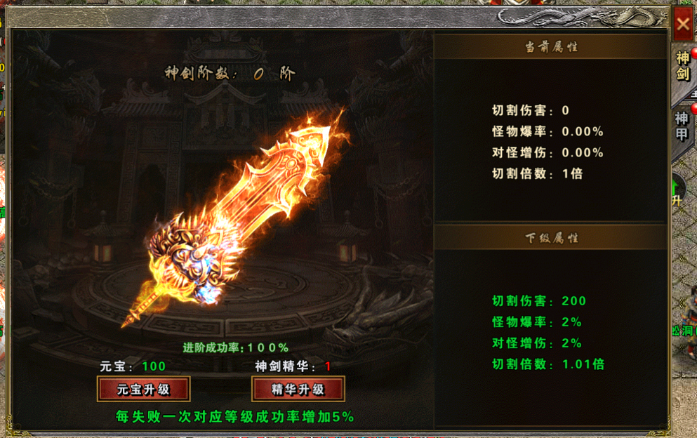前期可以使用元宝优先提升神器系统,可以提升高额的对怪伤害,受怪减免属性,使你打宝的效率提升,获得装备材料更快,减少BOSS对你的伤害等。切割伤害还能增加破防。使你更好的输出。