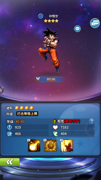 龟派气功[主动技能]:对前方单体发动龟波攻击,共造成139%物理伤害,70%概率附加【眩晕】状态,持续2回合