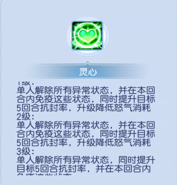 有人会问,为什么不是冰心,灵心仅仅能够解开一个目标,冰心则是全体,孰强孰弱一目了然!其实小编也清楚,但是一切特技的根源就是愤怒!不是每一个人都有神龙,能够做到特技自由!灵心消耗愤怒较低,而且单人竞技我方全体单位才不过六个人!