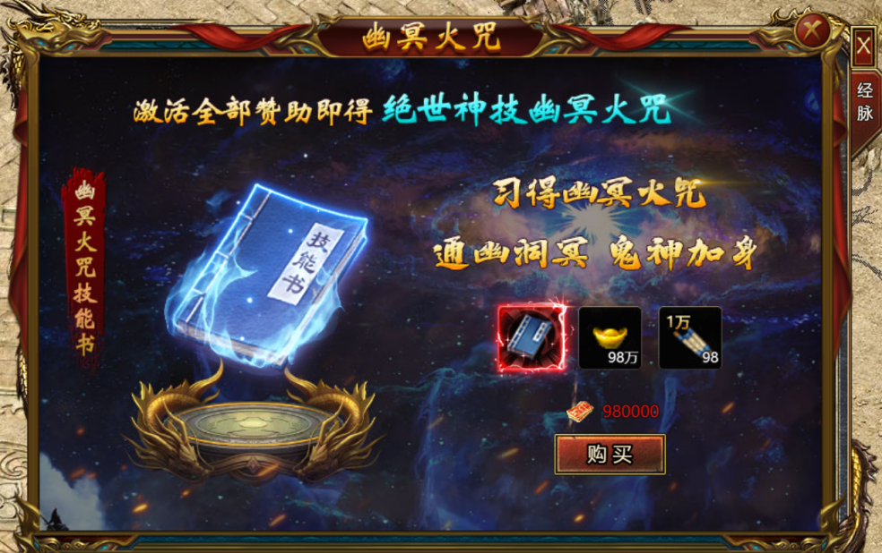 2、经脉等级每提高10 级将会提供1个资质点,消耗资质点可以提高经脉技能的等级。
