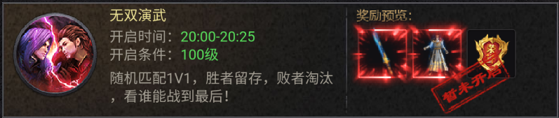奖励预览:无双绣春刀(幻武)、无双飞鱼服(装扮)、荣誉。