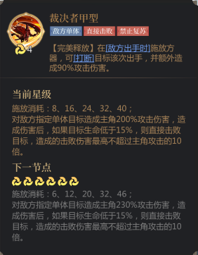 裁决者甲型:打断对面核心c位的怒技释放和斩杀低血量。