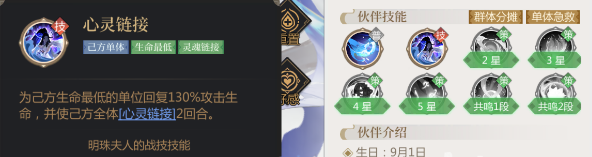 明珠夫人可以回血的同时链接全部伙伴分摊伤害,极大保证c位输出的存活率