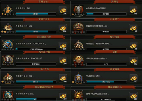 新手黄金除了主线任务跟每日奖励之外,最好取得的地方就是成就系统了,点开左上方领主头像,可以看到右下方有一个成就,点进去之后有很多项目,先寻找简单的来解,想办法先赚到250黄金买第二生产工人,游戏会顺利很多。