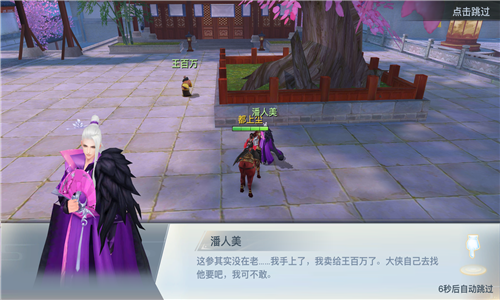 当找到医仙云幼微,医仙会让你找药先去救韩如雪。要找的药材是一株千年人参,而这株人参在恶霸潘人美手里,所以在这里你会和潘人美进行一场的打斗。当挑战成功后潘人美会告诉你那株千年人参已经卖给了王百万,然后你就要去找王百万拿人参。
