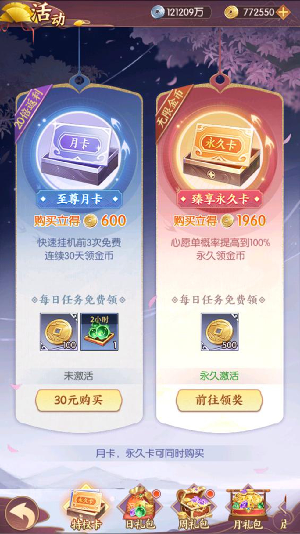臻享永久卡,无限金币,售价98元。