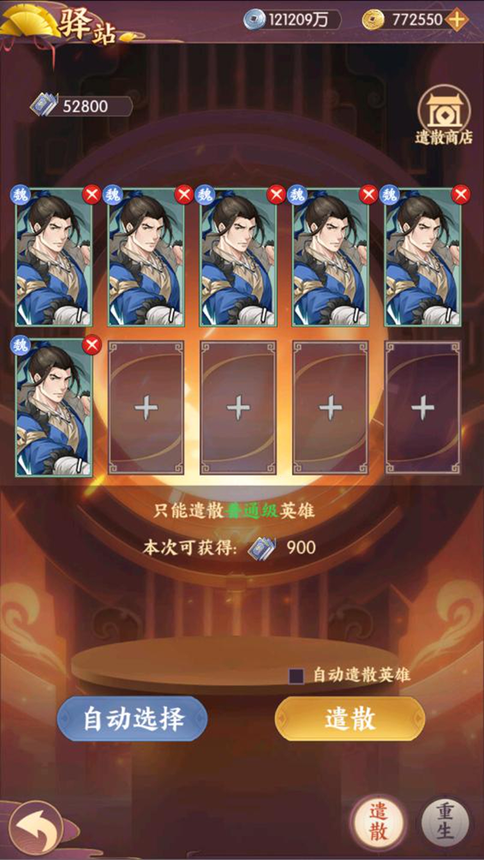 英雄遣散:玩家可对绿色英雄进行遣散,遣散英雄可获得威望+星尘