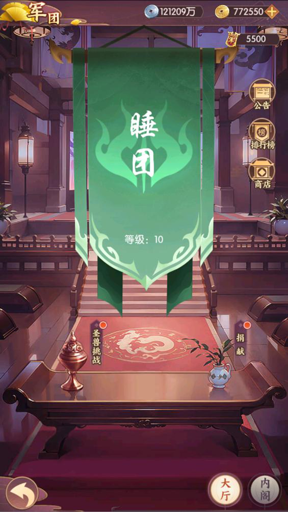 军团玩法为前期必不可少的资源玩法,每日挑战BOSS可获得魂玉、普通星石、银币...等资源。