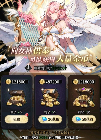 7、【女神供奉】这个是游戏内获取大量金币最快捷方便的地方,只需要要点点点即可领取和挂机获取资源一样。