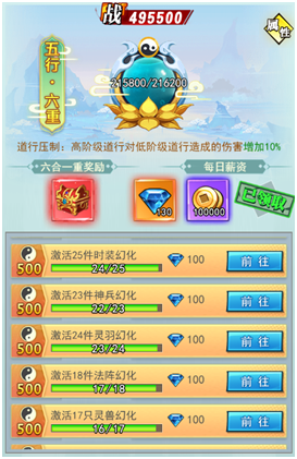 御灵师可以在镇魂之路中通过完成各种类型的任务来提升自己的道行等阶,每完成一个任务都可以获得相应的钻石。在这里还可以领取每日薪资,道行等阶越高每日可领取的薪资就越多,御灵师还可以通过开通周卡领取双倍的薪资!
