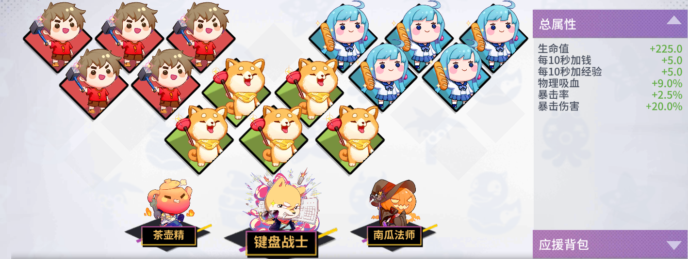 由于青龙技能加成既有物理加成也有法术加成,所以携带茶壶精,键盘战士和南瓜法师收益较大,双暴男提高了青龙被动强化普攻的暴击率和暴击伤害,吸尘汪提高了青龙的续航能力,面包妹提高了青龙的坦度以及加快了青龙的发育。