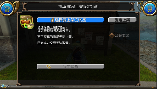 访问市场布告栏,选择『使用市场布告栏』→『物品上架/领取收入』,进入上架画面。