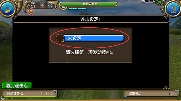 进入连击列表,选中连击设定1,按下图进行连击设定。