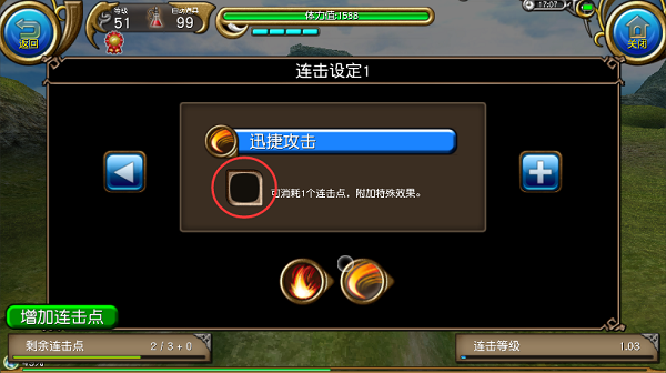 随着连击的使用,连击等级也会跟着升级,达到整数等级后会增加相应的连击点数。