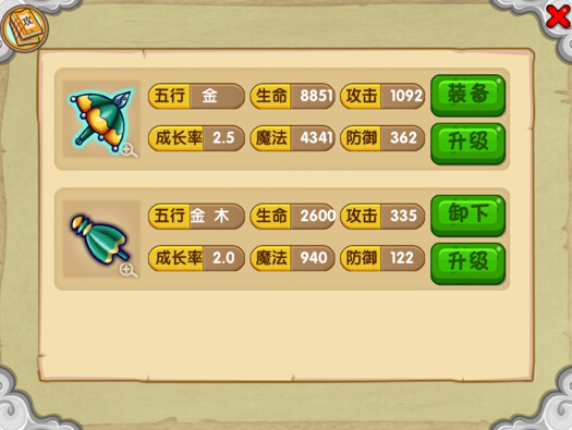 造梦西游OL中法宝都有其各自的属性,不同的属性在加成方面不同。