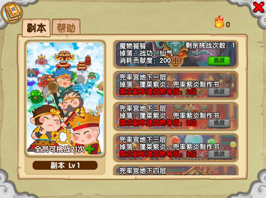 1、关于副本,1级可以打魔物,3级开全部副本。新手不建议打,战斗力越高打魔物越好。