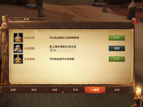 福利界面,公会奖励领取,公会商店,公会竞拍