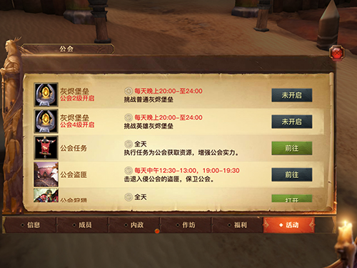 活动界面,公会任务领取以及一些公会活动的入口