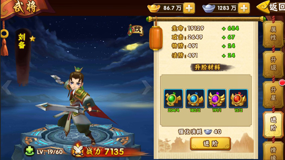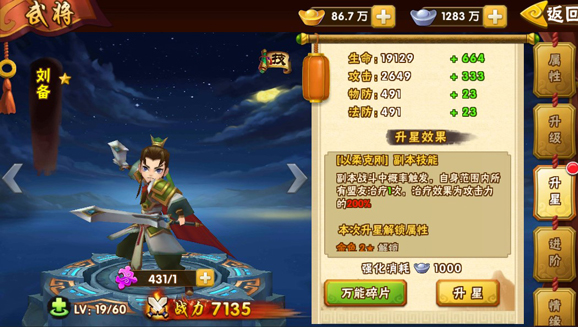 每天完成以上每日必做,产出的大部分道具都可以用于武将培养,尤其是【升级】,【升星】,【进阶】三个。时时刻刻对你的爱将进行深造吧!