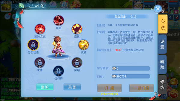 最为暴力的一个技能,最多能连续攻击敌人5次,伤害有多爆炸相信不用我多说了吧。但缺点也是十分明显,首先第一回合需要进入霸体状态,这样无疑浪费了一个回合的输出,而第二回合使用怒血狂击后,在第三回合会取消霸体状态,同时无法行动。也就是说3个回合换来一次非常爆炸的伤害,是否实用就见仁见智了,而且这技能要90级时才完全成型,属于大器晚成的技能。