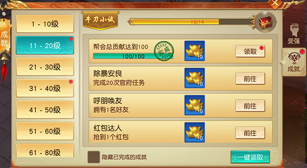 成就任务非常多,几乎每个成就达成都会奖励元宝,可以尽量去完成这些任务获得元宝。