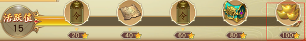 每天完成任务达到100活跃值,可以领取50元宝,积少成多。