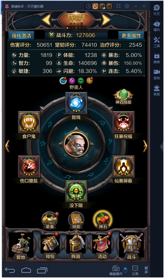 防御神石:不死之王(死亡立刻复活1次)永生之力(生命恢复提升)食尸鬼(击杀单位有几率恢复当前生命百分比)至高祝福(体能属性提升,扛不住才带)
