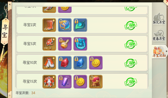 在“异火寻宝” “装备寻宝”中寻宝次数达到指定次数,便可以领取超级丰厚的奖励哦~