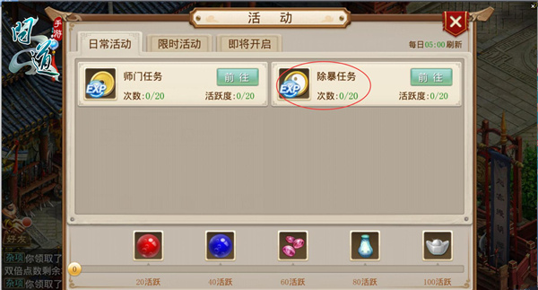 图2:《问道》手游活动列表——除暴任务