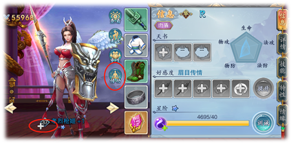 在《美人传》中,游戏内武姬的养成中最直接和核心的是武姬自身肉体的升级,所谓外修胫骨内修元气。武姬除了要装备精良的装备,和获得酷炫的高阶翅膀外,同时修炼自身的肉体,拥有强横的肉体,同样重要。武将培养包含:等级、好感度、星级、特性、技能、情缘