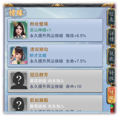 游戏中的情缘,属于激活后,累加三维属性,而情缘属于获得开启的武将,随即则获得该组合对应的情缘,无需情缘是否上阵;