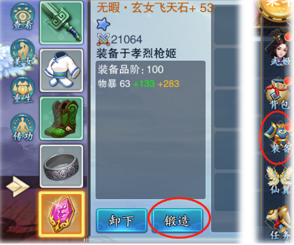 1、装备锻造的入口: